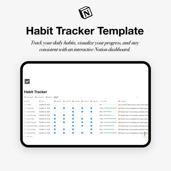 All-in-One Notion Productivity System – Tasks, Calendar, Habits & Goals in One Dashboard